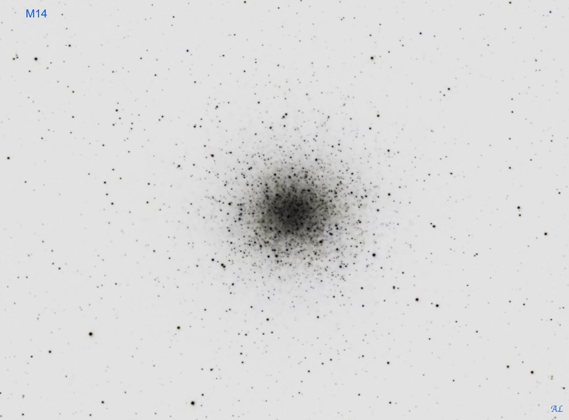 Remarque : M 14 ou NGC 6402 Amas globulaire dans la constellation d'Ophiuchus, de forme sphérique. Cet amas globulaire contient environ 150 000 étoiles dont 70 étoiles variables de la classe Céphéides type II.